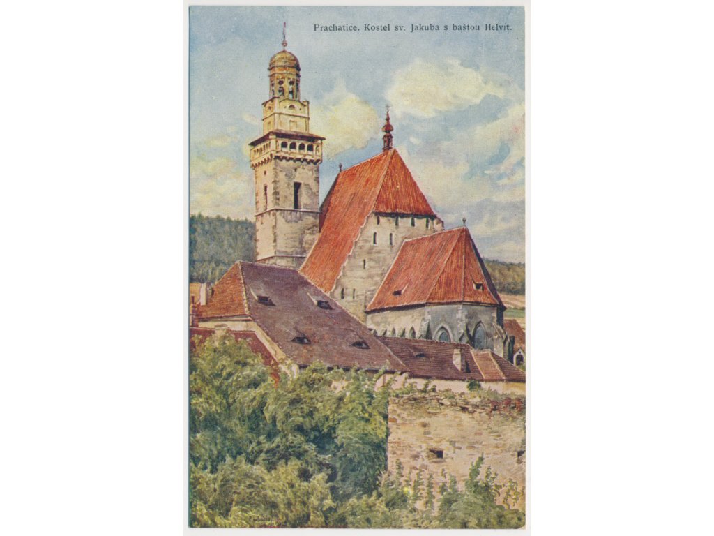 48 - Prachatice, Kostel sv. Jakuba s baštou Helvít, cca 1935