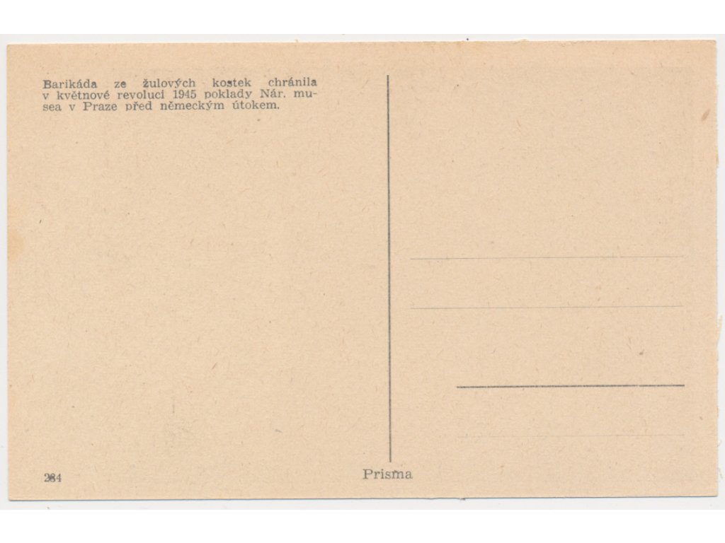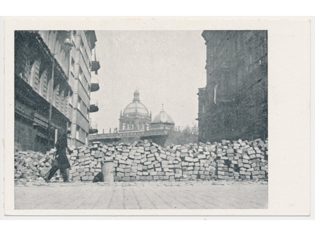 49 - Praha, Barikáda ze žulových kostek u muzea, květen 1945