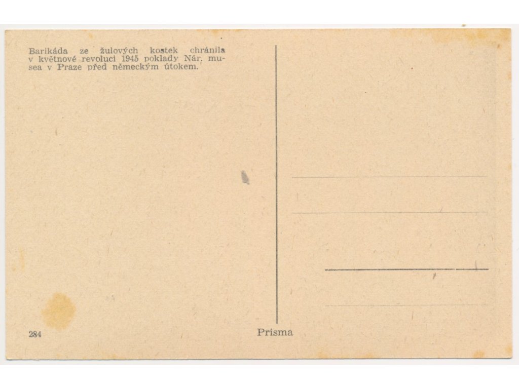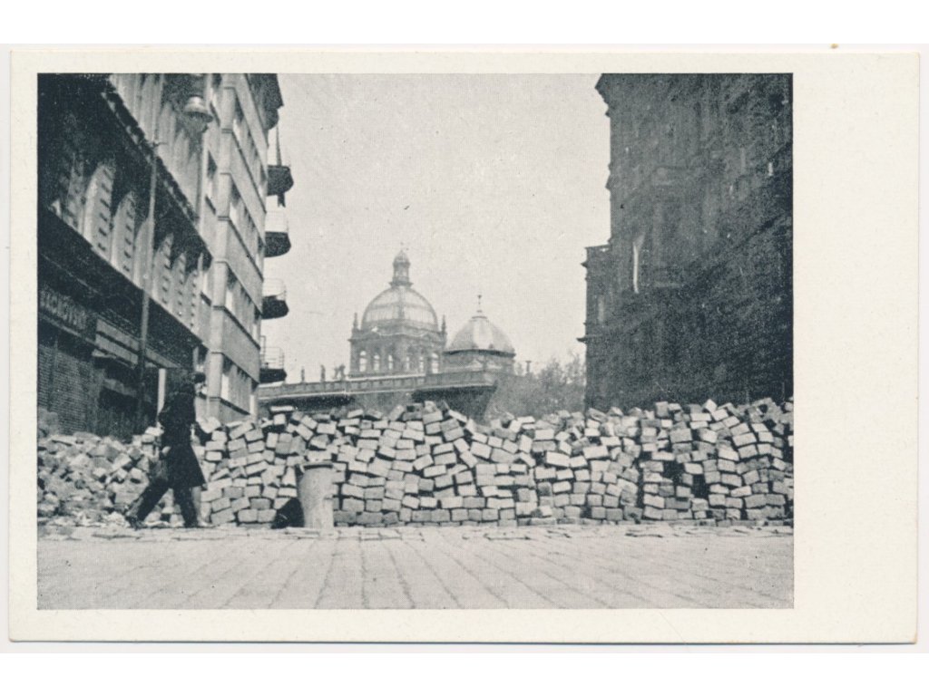 49 - Praha, Barikáda ze žulových kostek u Národního muzea v květnu 1945