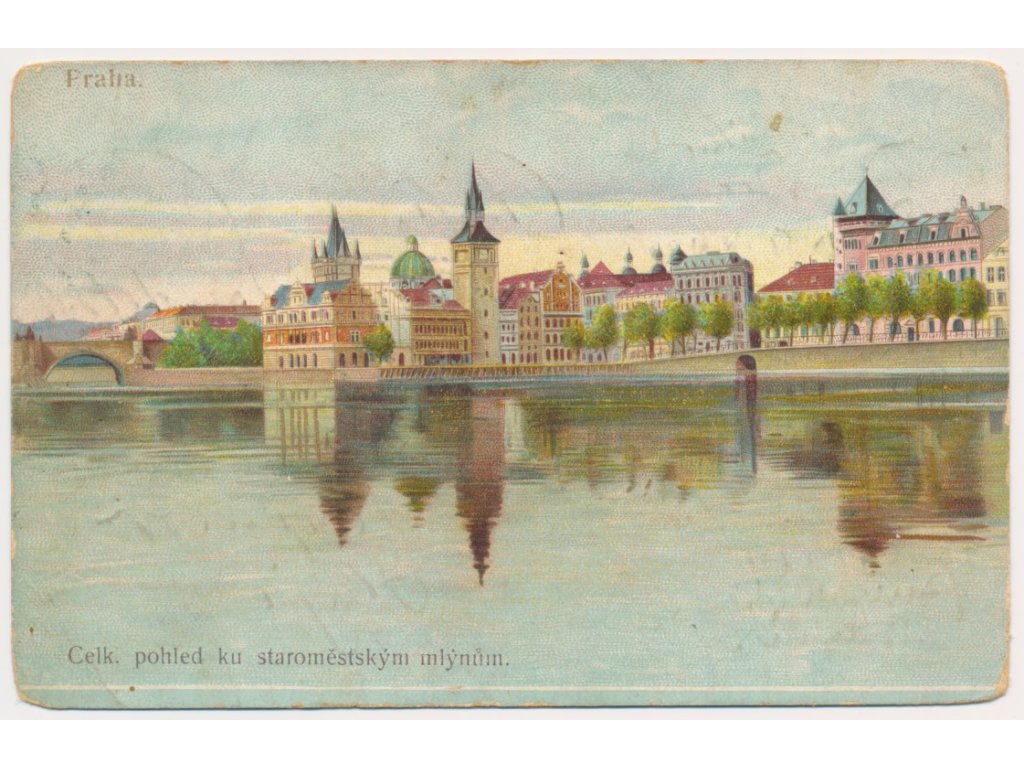 49 - Praha, Celkový pohled ku staroměstským mlýnům, cca 1907