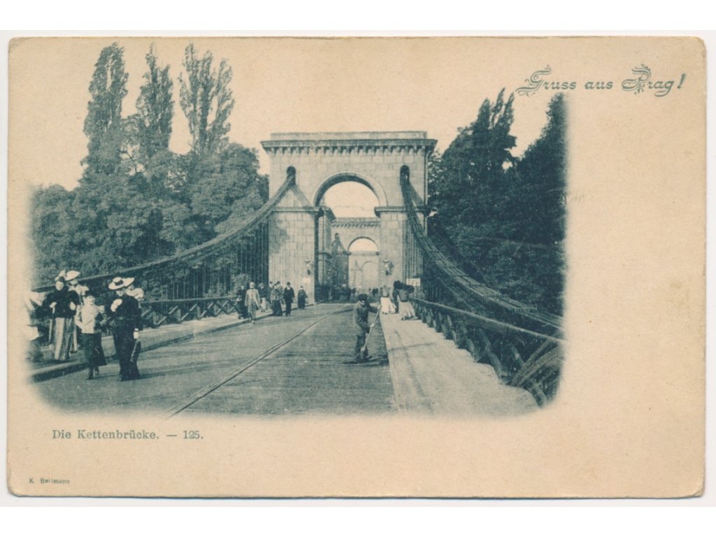 49 - Praha, Die Kettenbrücke, oživený Řetězový most, cca 1899