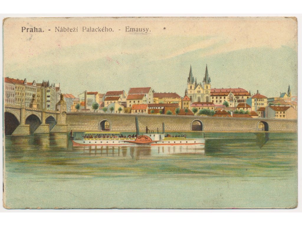 49 - Praha, Emauzy, Palackého nábřeží, parník Vyšehrad, cca 1913