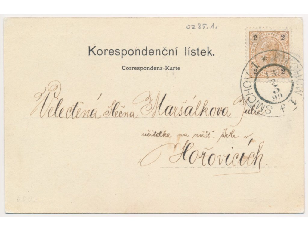 49 - Praha, Jungmannův pomník, foto K. Bellmann, prošlá poštou 1899