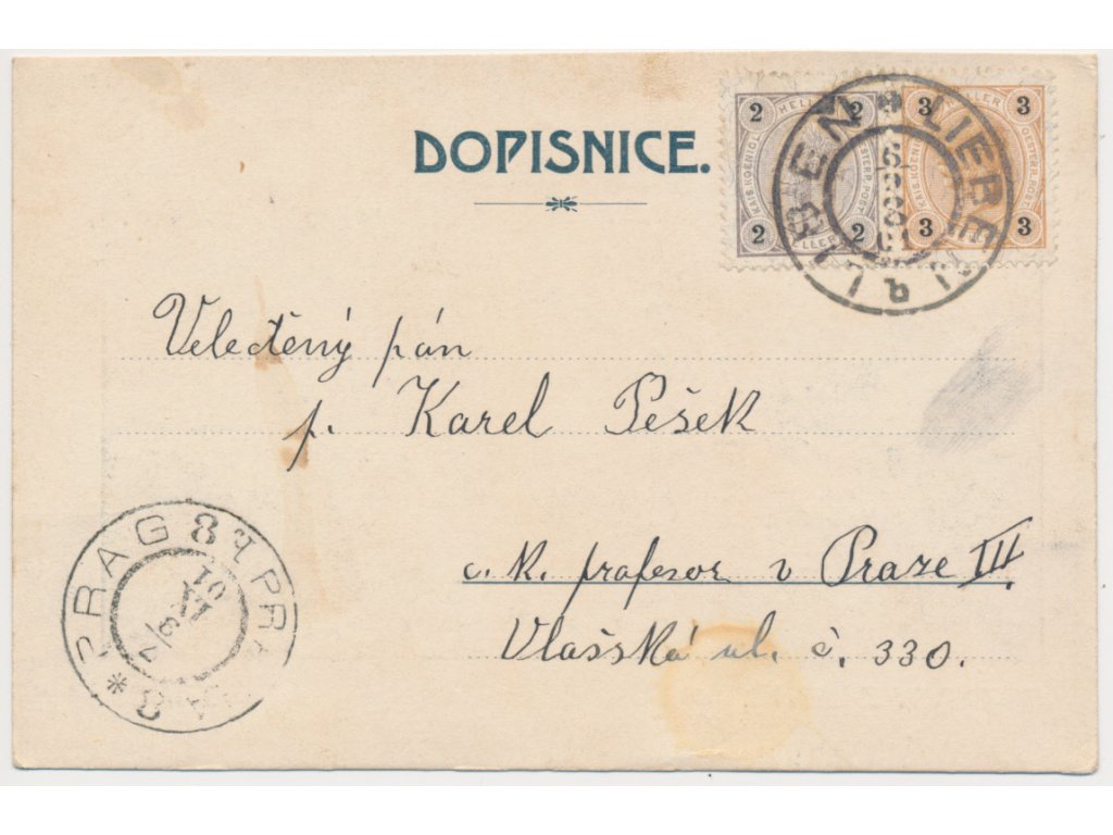 49 - Praha, Libeň, Zámek, prošlá poštou 1901