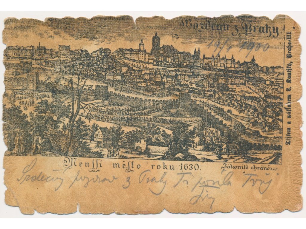 49 - Praha, Město roku 1630, prošlá poštou 1900