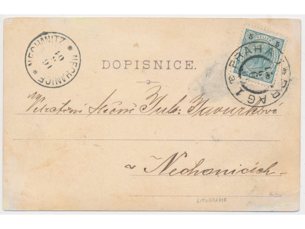 49 - Praha, Nový most císaře Františka I., litografie J. L. Bayer, 1901