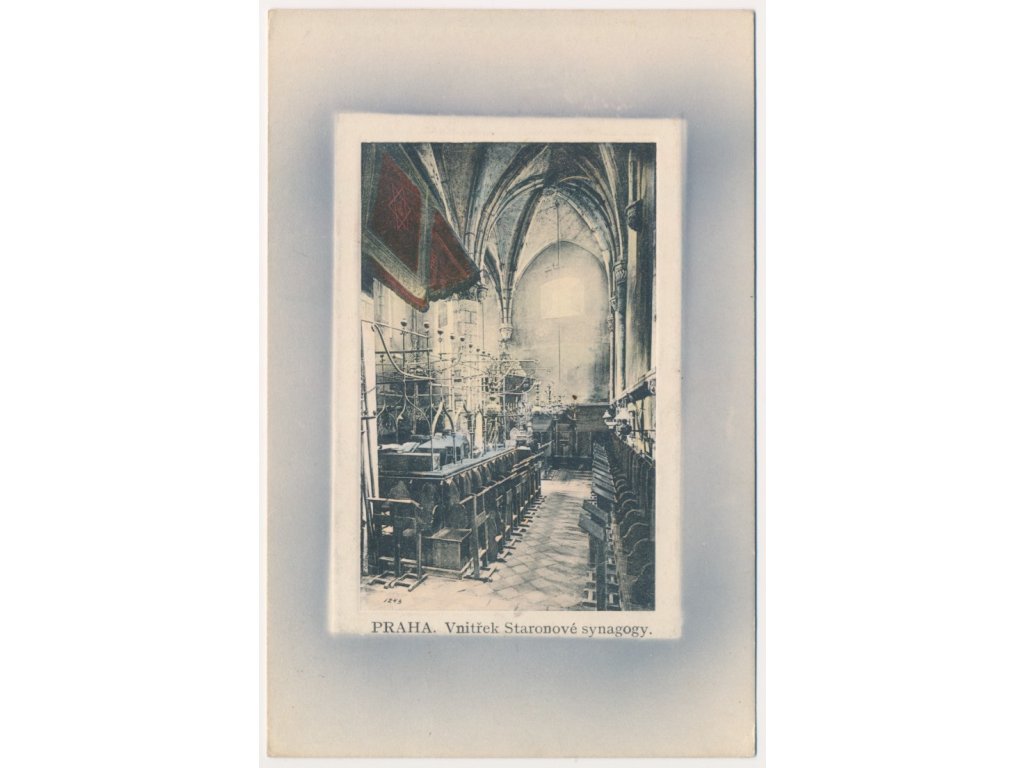 49 - Praha, okénková koláž, Vnitřek staronové synagogy, cca 1915