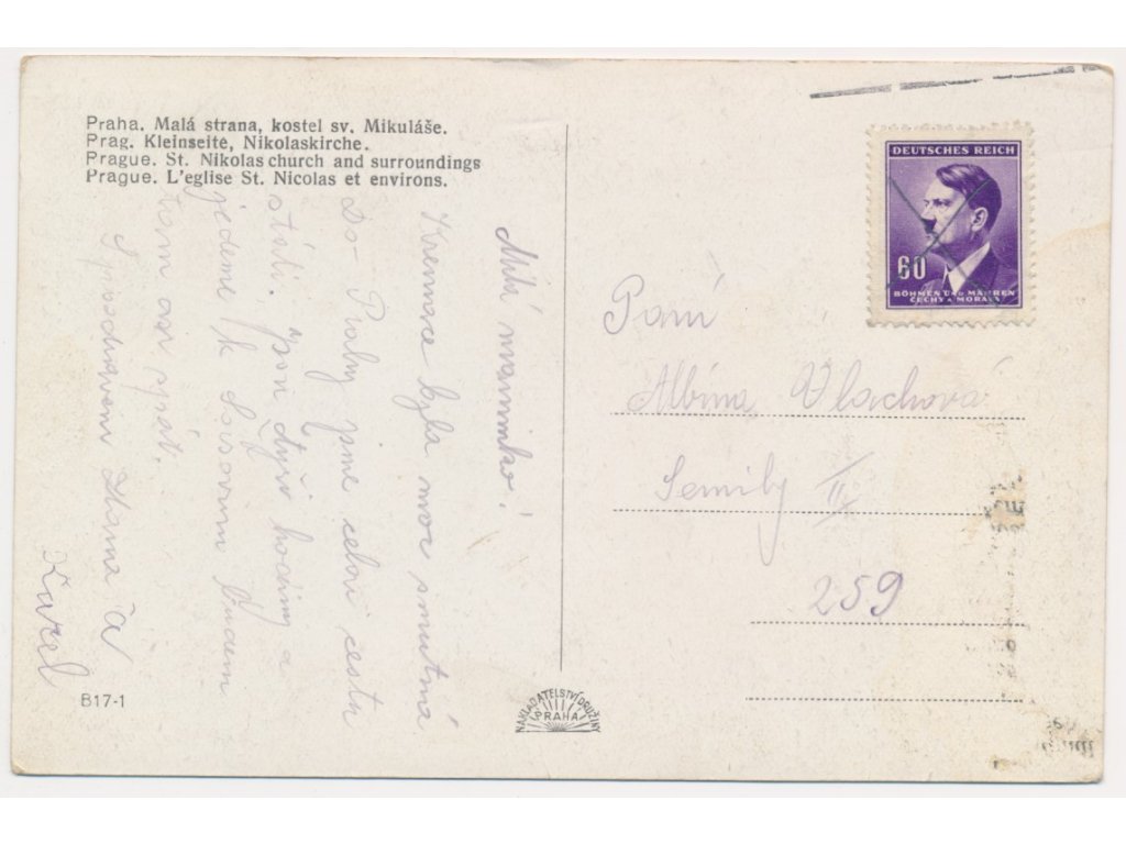 pohlednice prošlá poštou, stav odpovídá použití, uložení a stáří