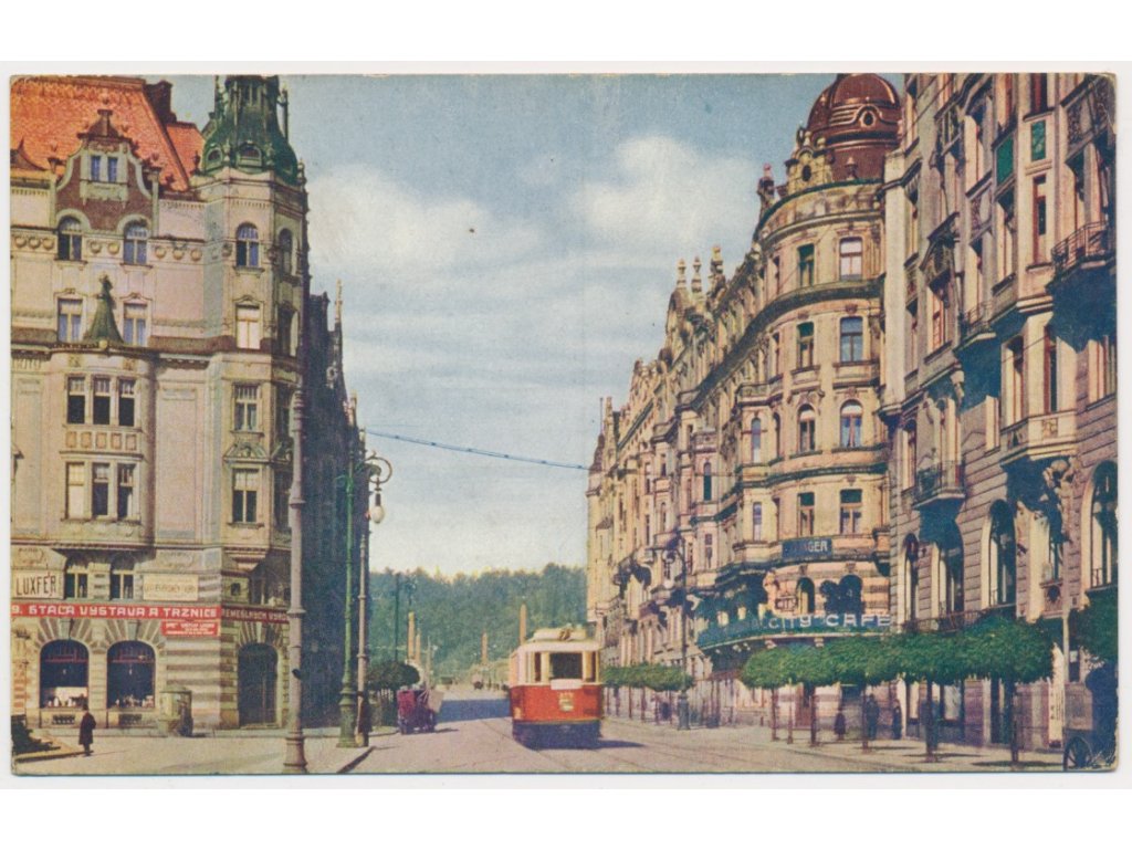 49 - Praha, oživená Mikulášská třída s tramvají, cca 1918