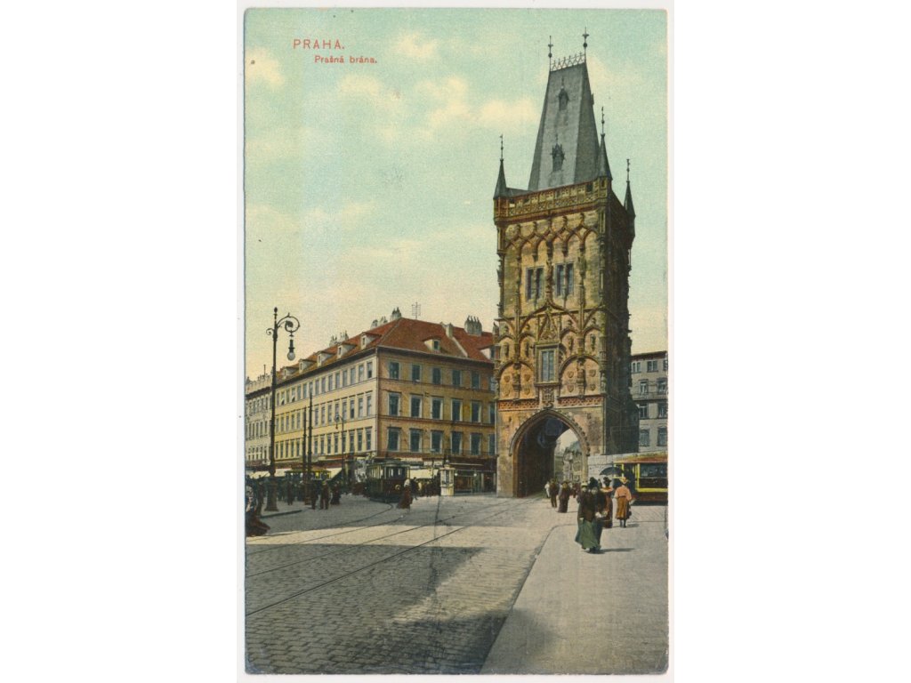 49 - Praha, oživená partie před Prašnou bránou, 1907