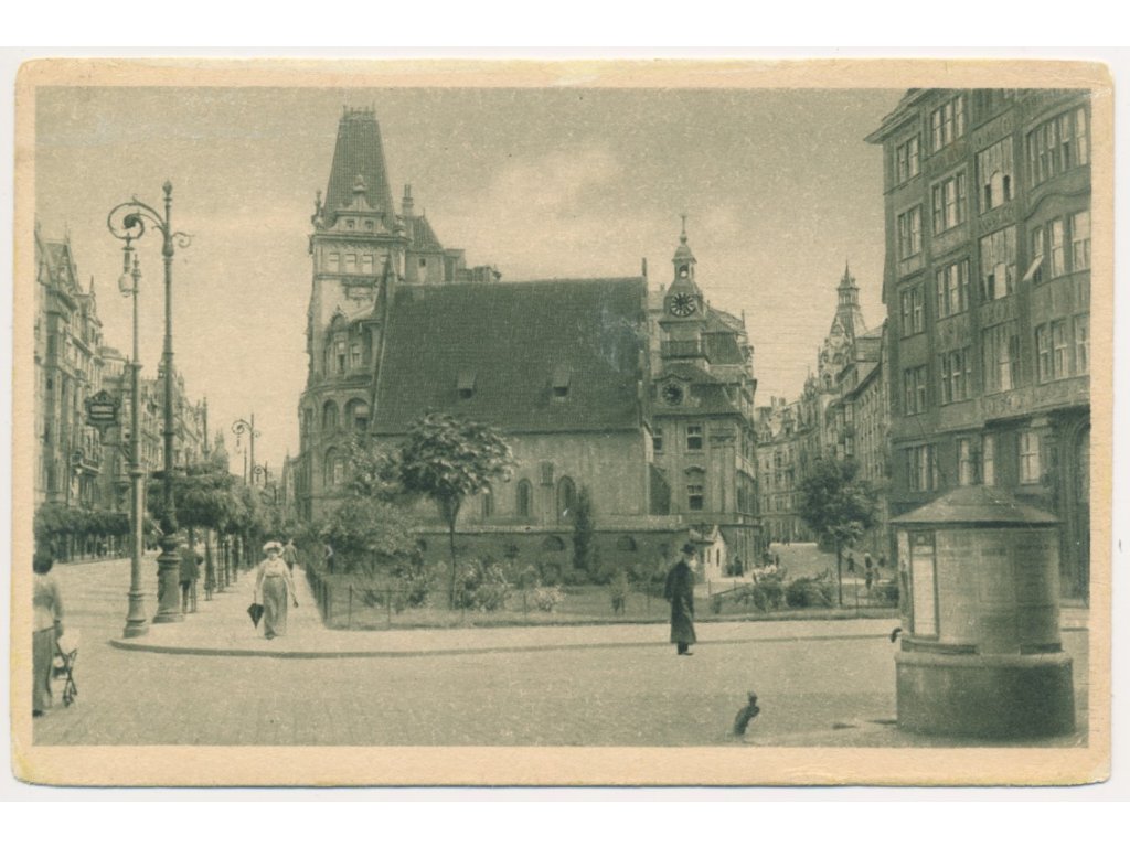 49 - Praha, Oživená partie před synagogou, cca 1910