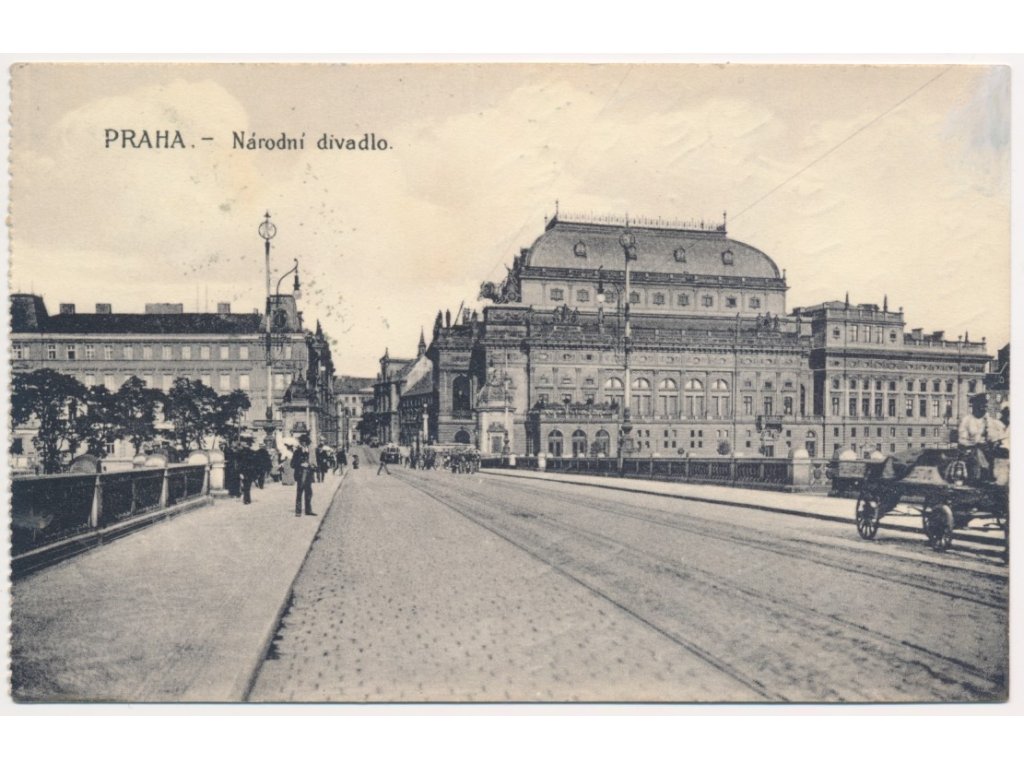 49 - Praha, oživená partie u Národního divadla, cca 1914