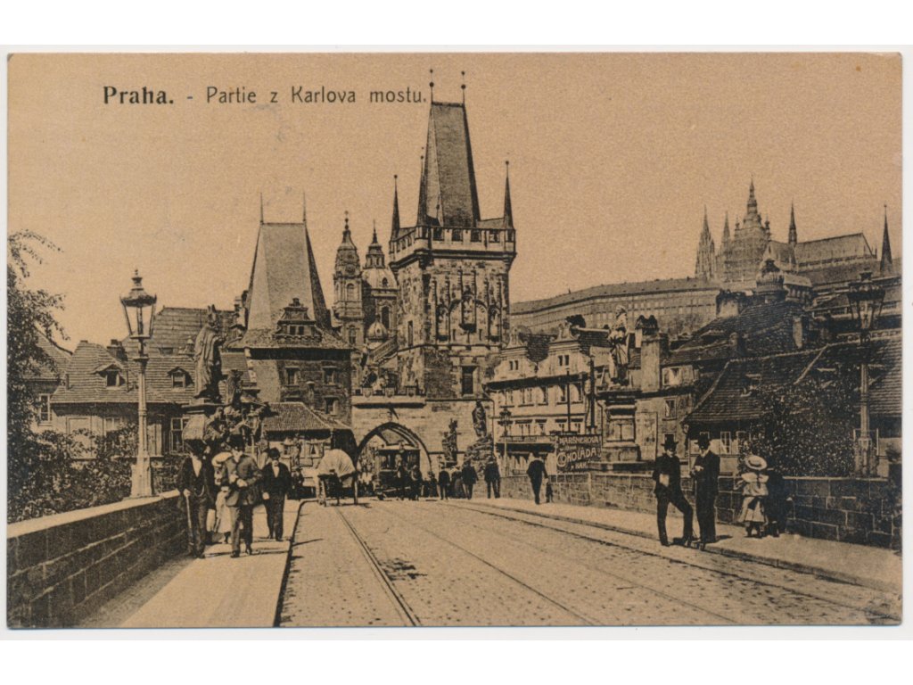 49 - Praha, Oživená partie z Karlova mostu, prošlá poštou 1909