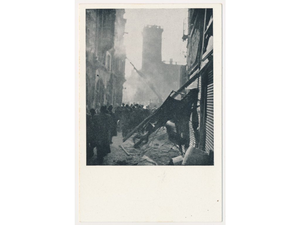 49 - Praha, Oživená partie z ulice s troskami domů v květnu 1945