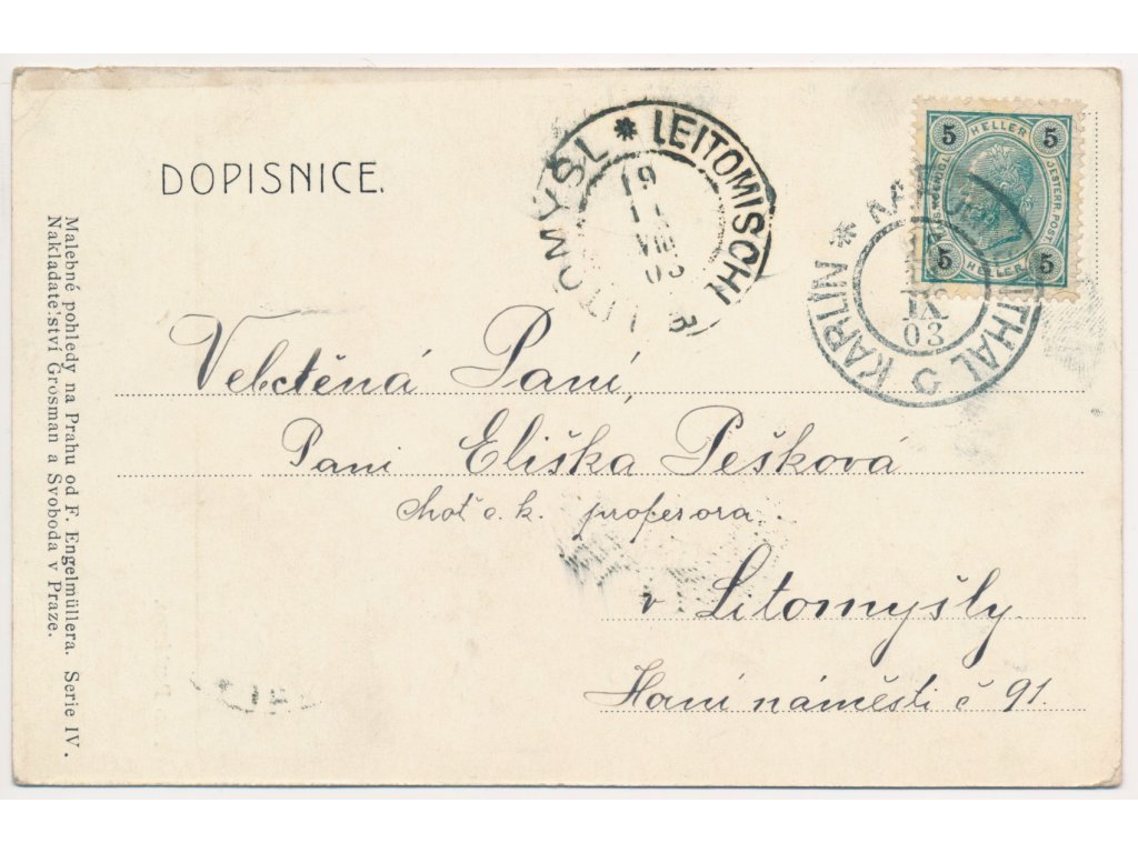 49 - Praha, Partie pod Petřínem, F. Engelmüller, prošlá poštou 1903