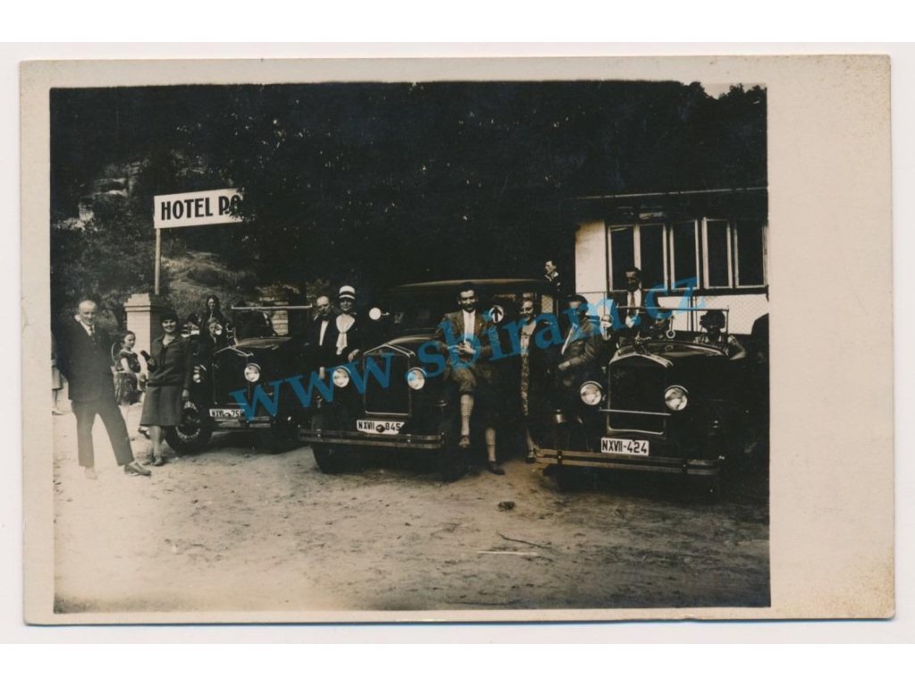 49 - Praha, Podolí, automobilismus, oživený záběr před hotelem, cca 1928