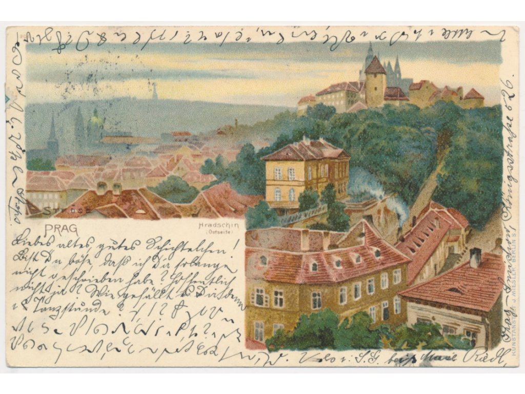 49 - Praha, pohled na Hradčany, J. Miesler, prošlé poštou 1900
