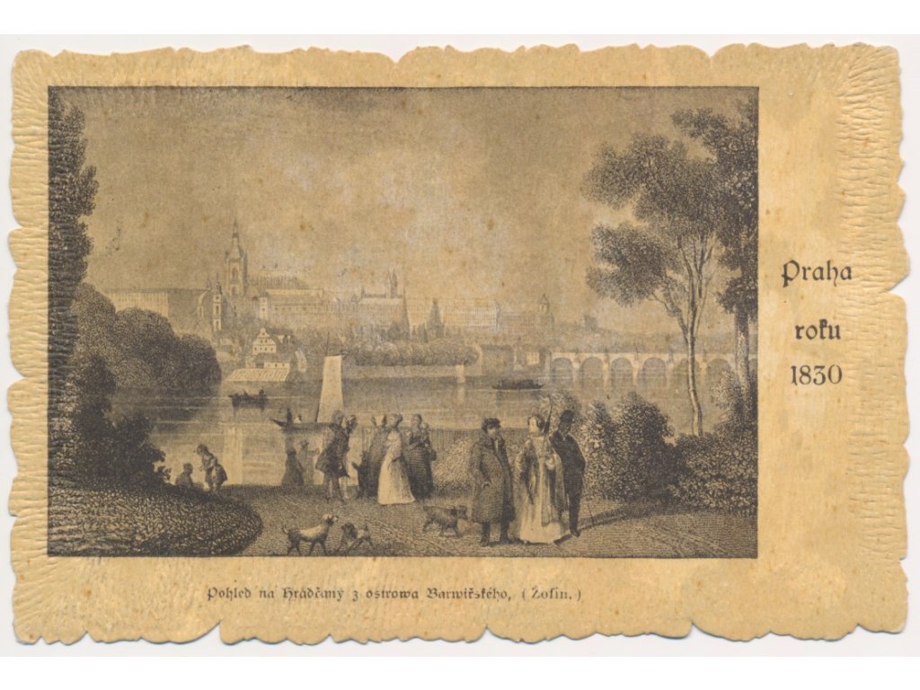 49 - Praha, Pohled na Hradčany z Barvířského ostrova roku 1850