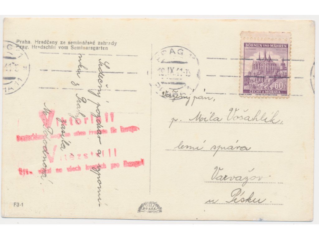 49 - Praha, pohled na Hradčany ze seminářské zahrady, cca 1941