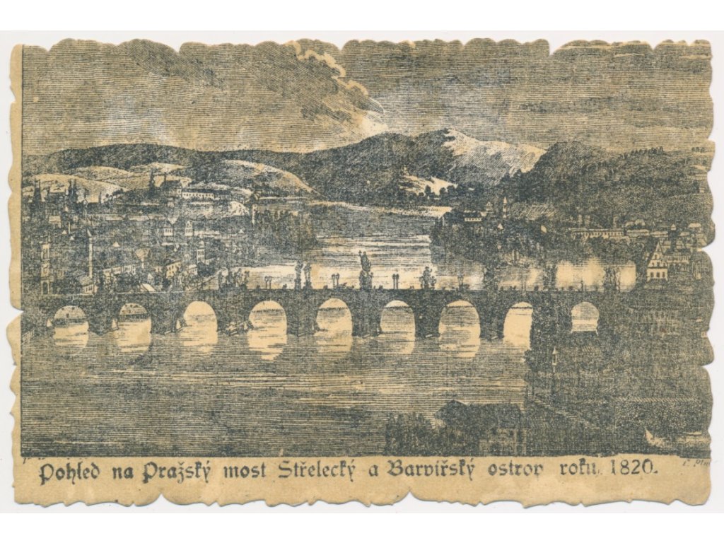 49 - Praha, Pohled na Pražský most, Střelecký a Barvířský ostrov roku 1820