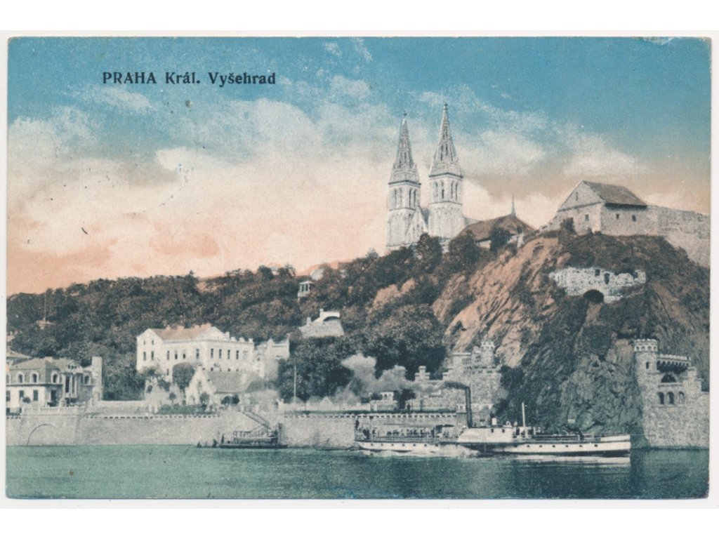 49 - Praha, pohled na Vyšehrad, parník na řece, cca 1916