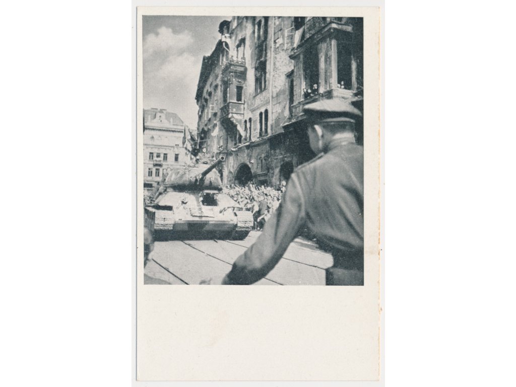 49 - Praha, Přehlídka čsl. armády, tank, lidé na ulici, květen 1945