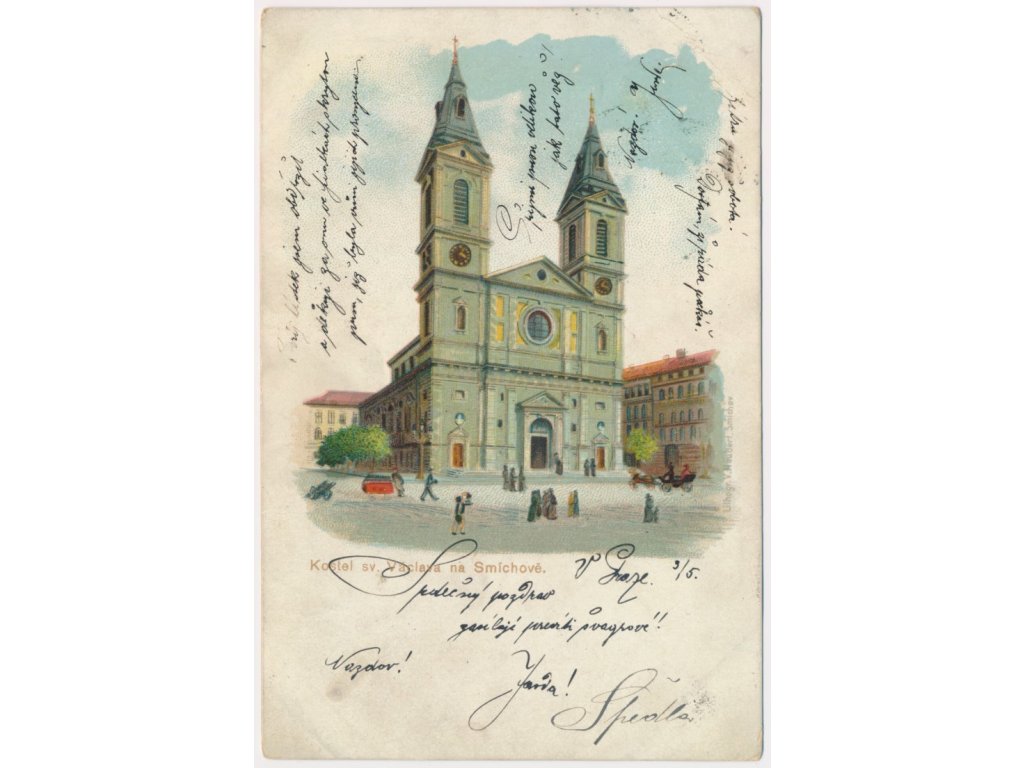 49 - Praha, Smíchov, oživená partie před kostelem sv. Václava, cca 1901
