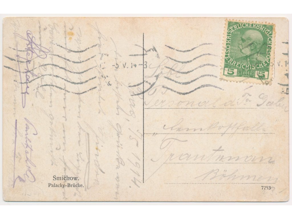 49 - Praha, Smíchov, Palackého most, lidé, tramvaj..., cca 1914