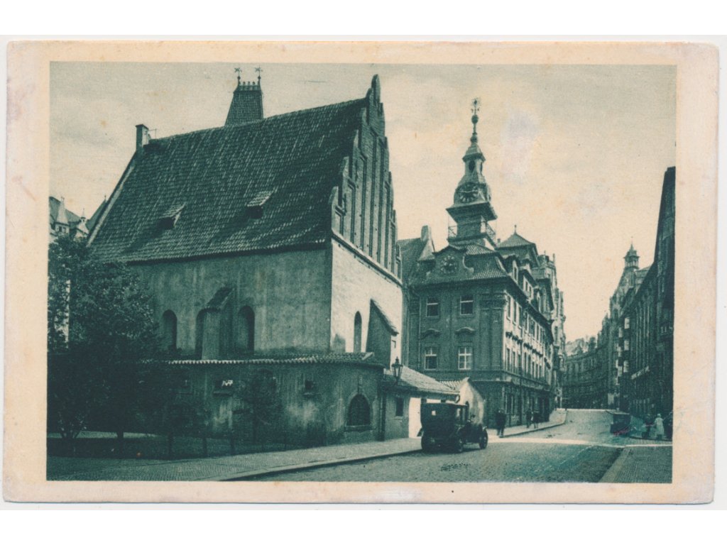 49 - Praha, Synagoga, oživená partie s automobilem, cca 1946