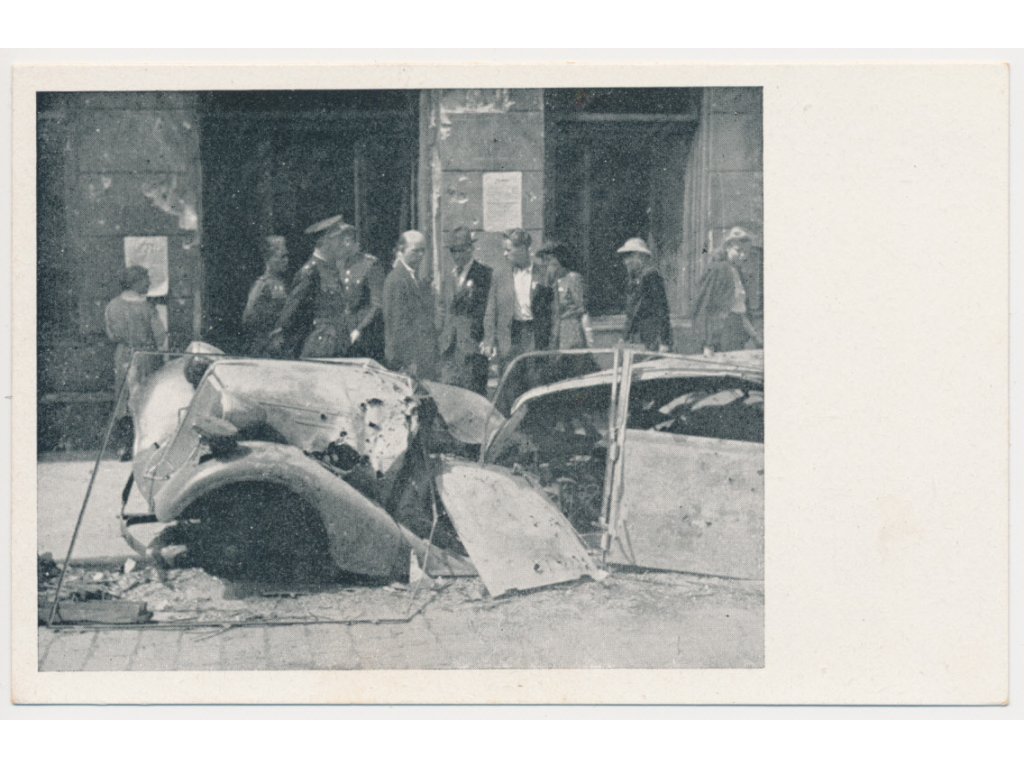 49 - Praha, Trosky automobilu před policejním komisařstvím, květen 1945