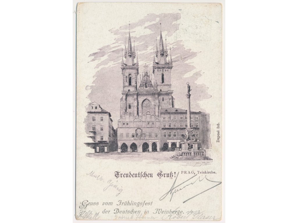 49 - Praha, Týnský chrám, prošlá poštou 1898