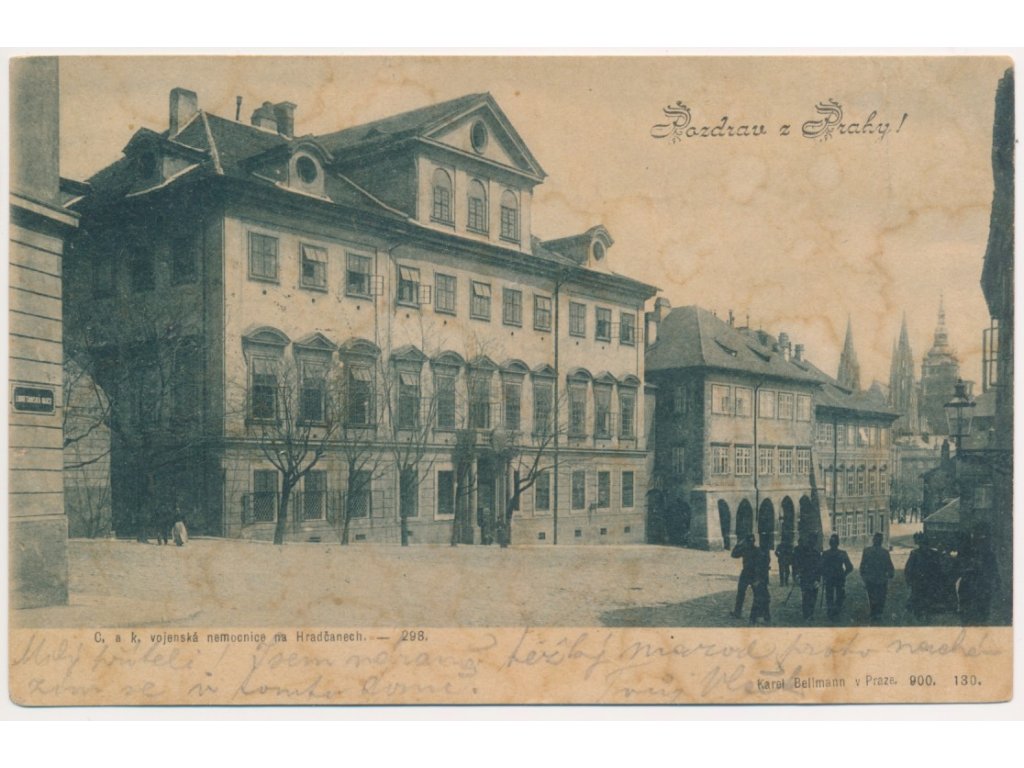 49 - Praha, Vojenská nemocnice na Hradčanech, partie s vojáky, 1900