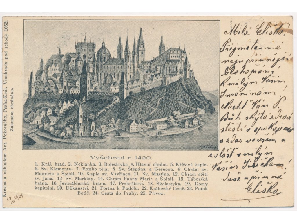 49 - Praha, Vyšehrad r. 1420, prošlá poštou 1901