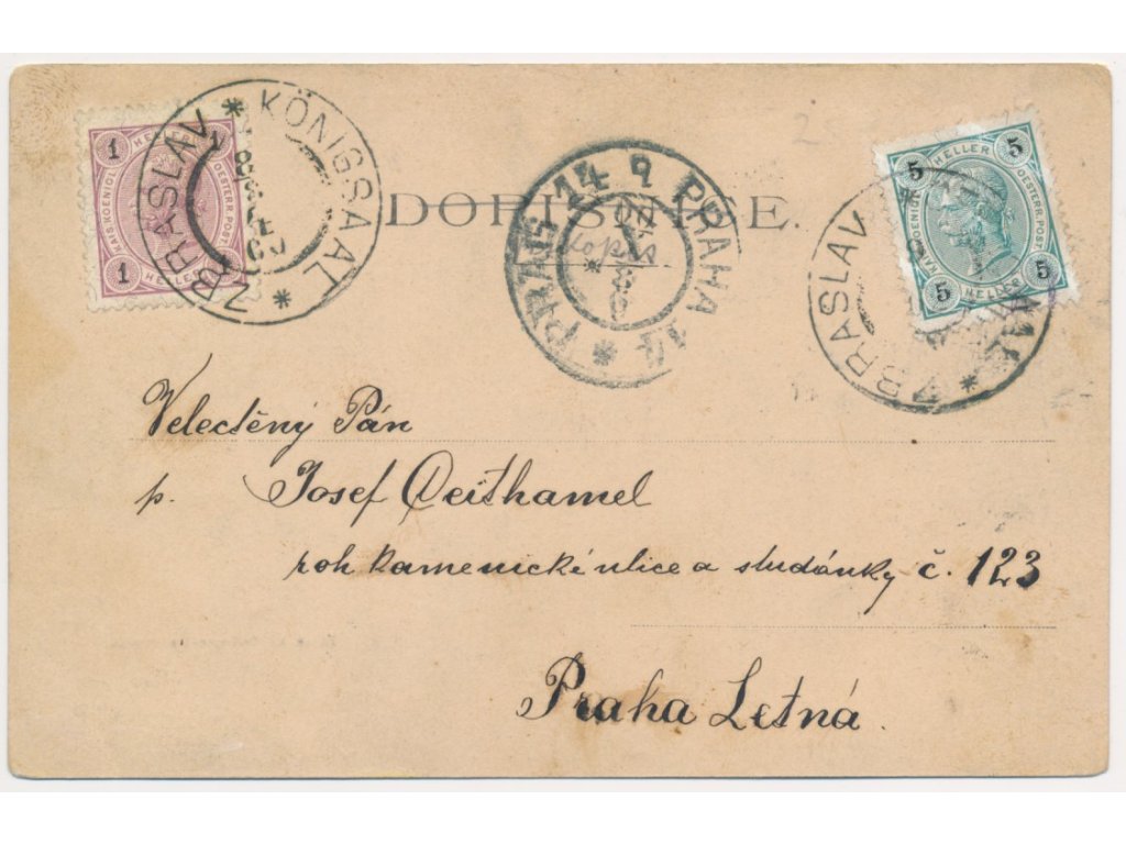 49 - Praha, Zbraslav, Zámek, prošlá poštou 1900