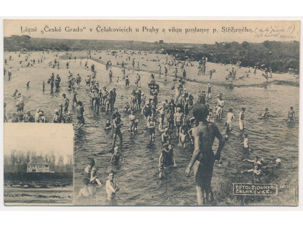 50 - Praha - východ, Čelákovice, 2 - záběr, Lázně "České Grado", vila poslance Stříbrného, cca 1928
