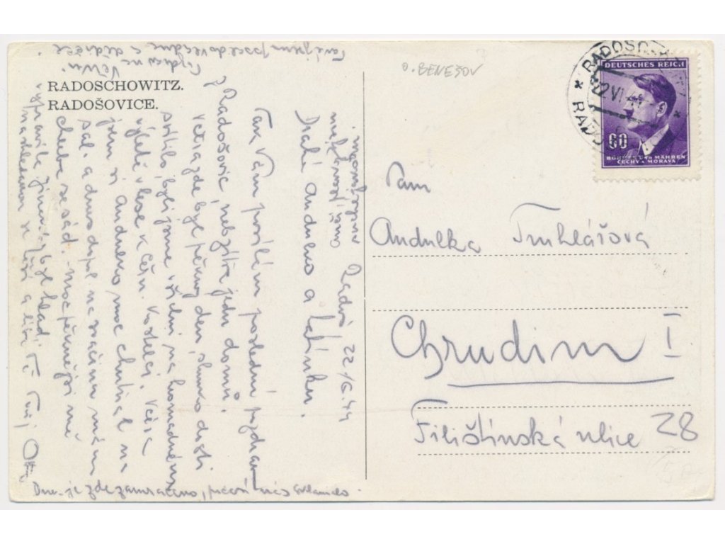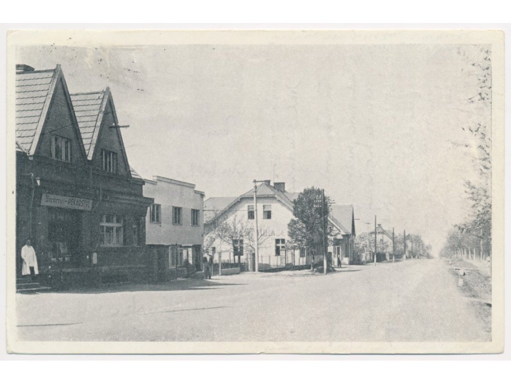 50 - Praha-východ, Radošovice, oživená partie před pekařstvím, domy..., 1943