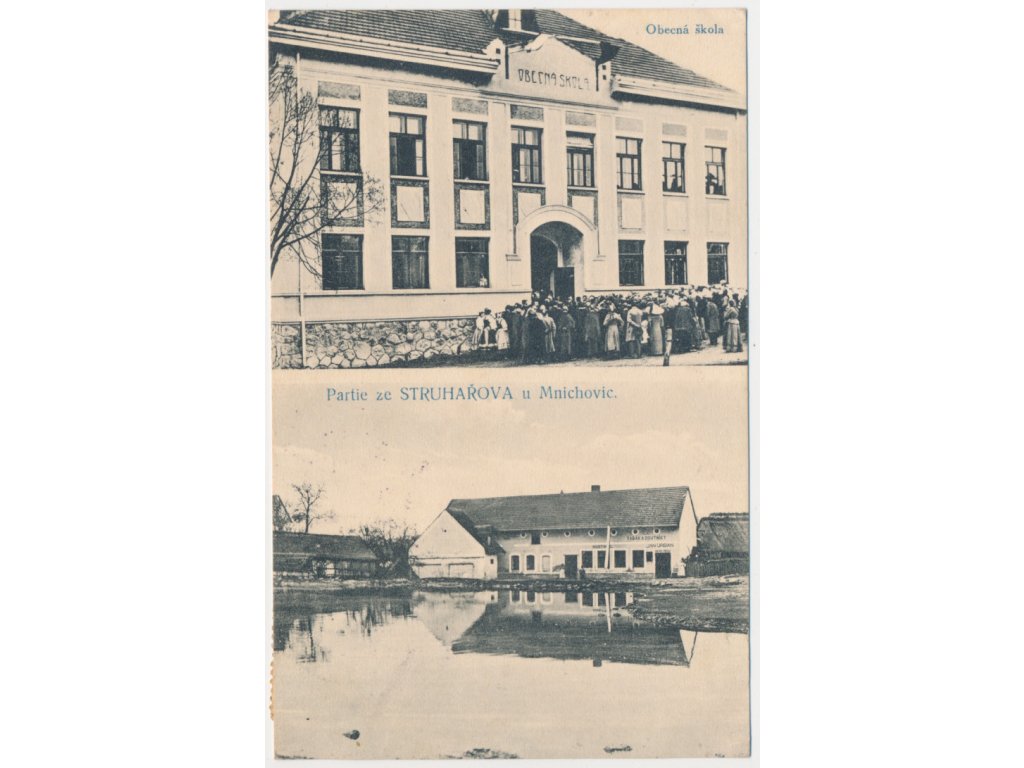 50 - Praha-východ, Struhařov, 2 záběr, Hostinec a obchod, Škola, cca 1917