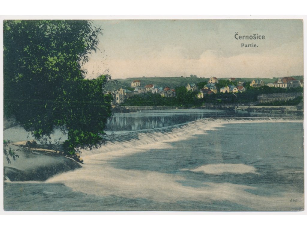 51 - Praha-západ, Černošice, partie u splavu s pohledem na město, 1904