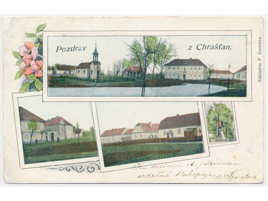 51 - Praha-západ, Chrášťany, 3 záběrová koláž dominant obce, cca 1900