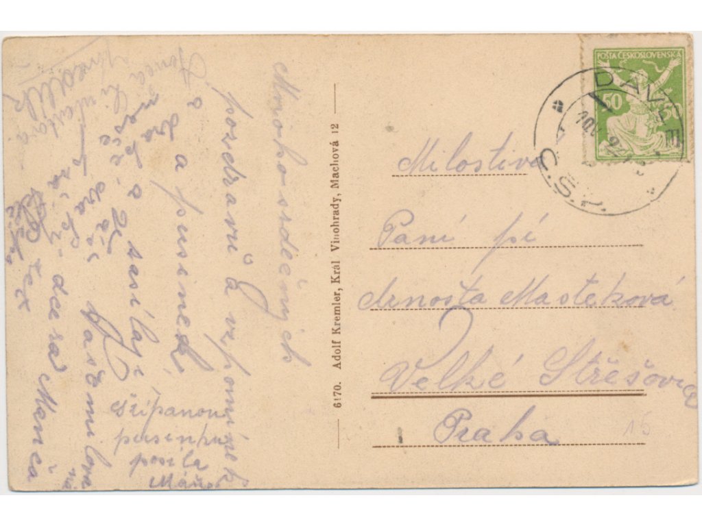 pohlednice prošlá poštou, stav odpovídá použití, uložení a stáří