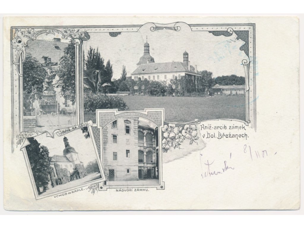 51 - Praha-západ, Dolní Břežany, 4 záběrová zámecká koláž, cca 1901