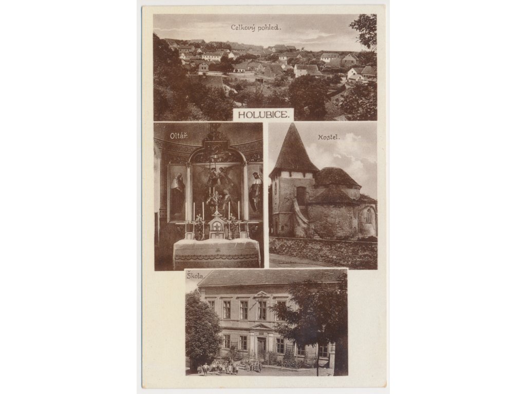 51 - Praha-západ, Holubice, 4 záběr, Škola, Kostel, Oltář, Celk. pohled, 1935