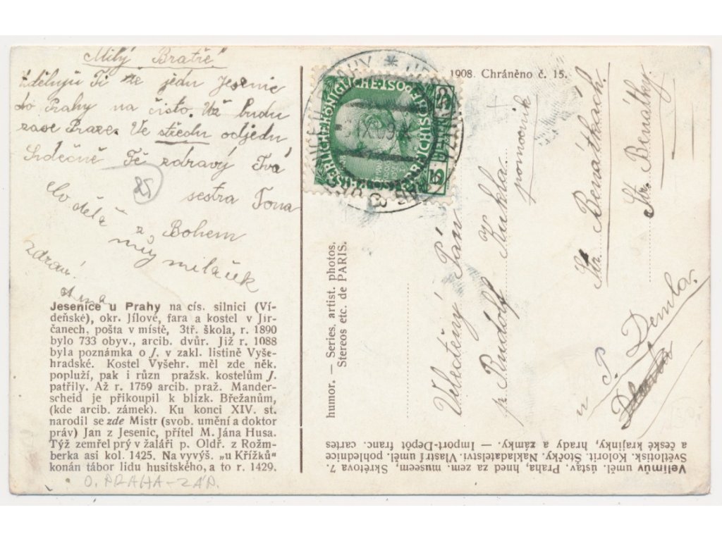 51 - Praha-západ, Jesenice, oživená partie z náměstí, cca 1909
