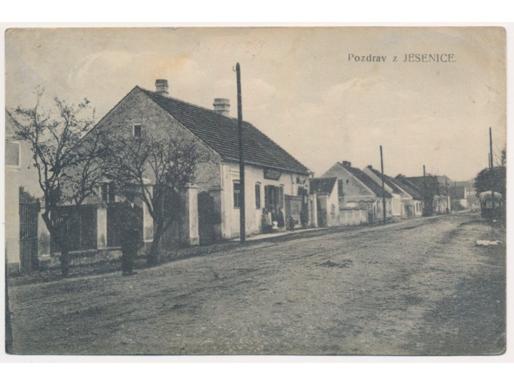 51 - Praha-západ, Jesenice, partie s obchodem a rodinnými domy, cca 1917
