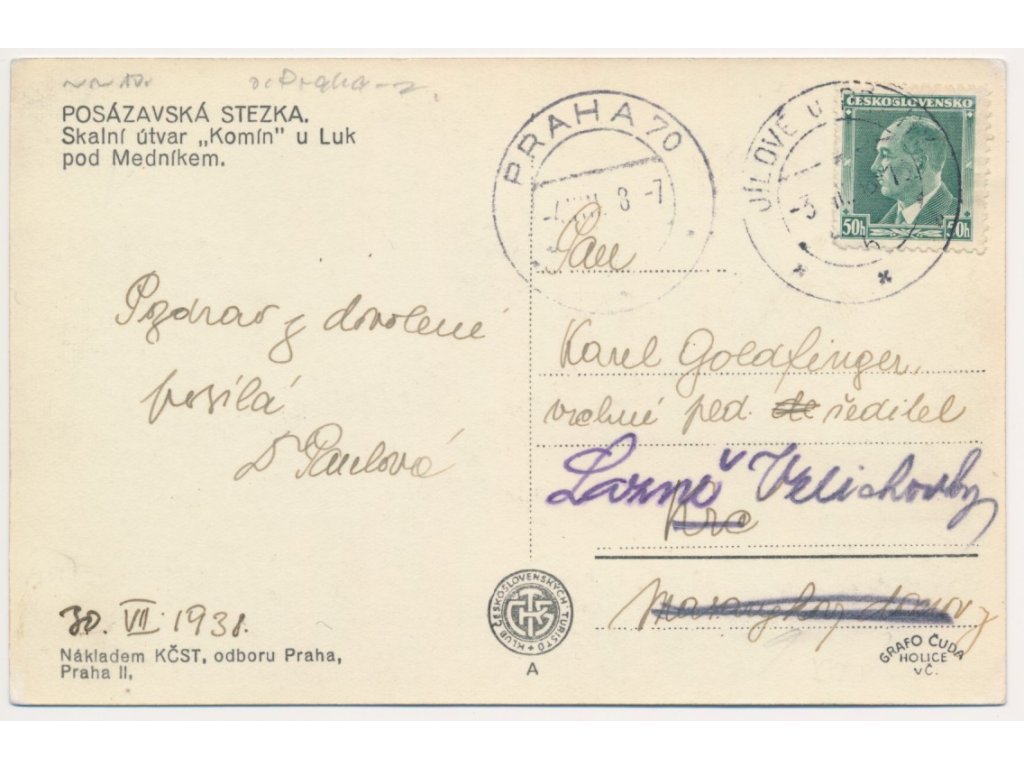 51 - Praha-západ, Posázavská stezka, Skalní útvar "Komín", cca 1938