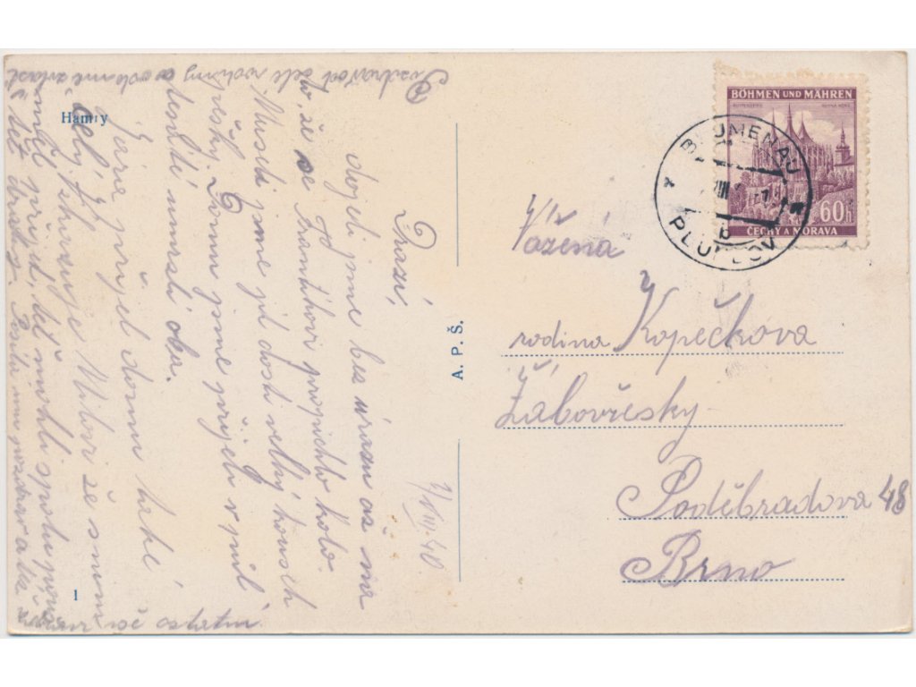 pohlednice prošlá poštou, stav odpovídá použití, uložení a stáří