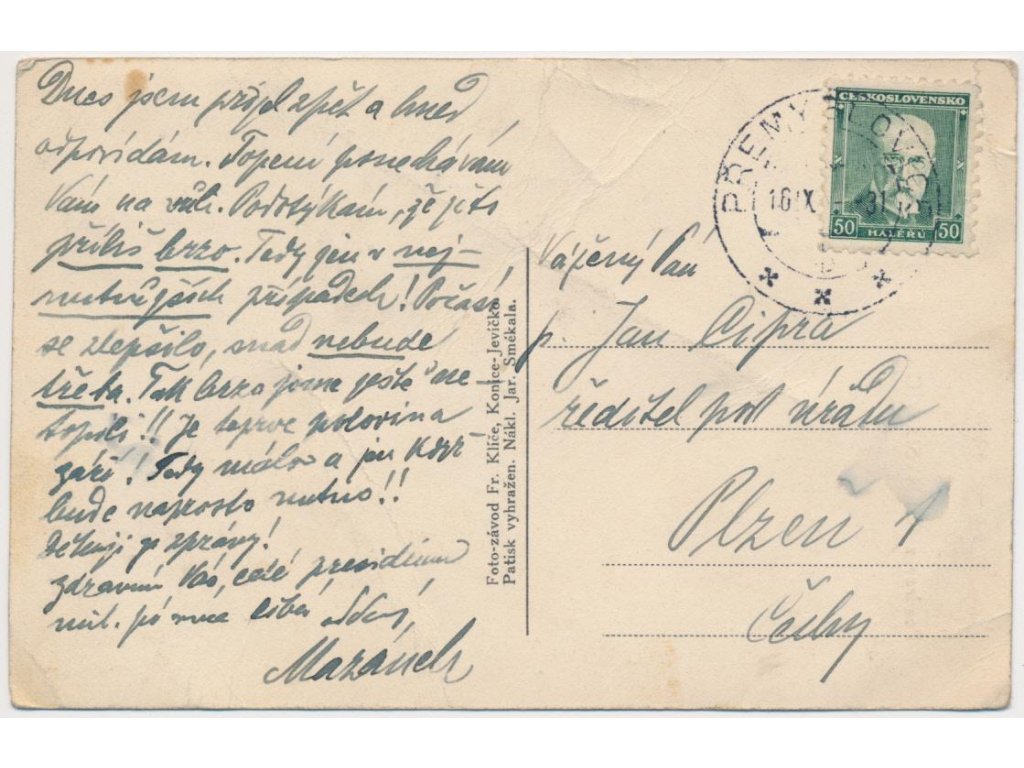 pohlednice prošlá poštou, stav odpovídá použití, uložení a stáří