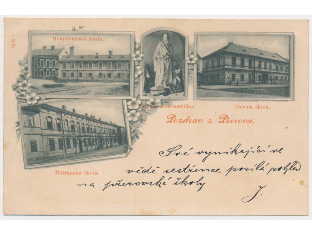 53 - Přerov, 4 - záběrová koláž, Měšťanská, Obecná a Hospodářská škola, cca 1899