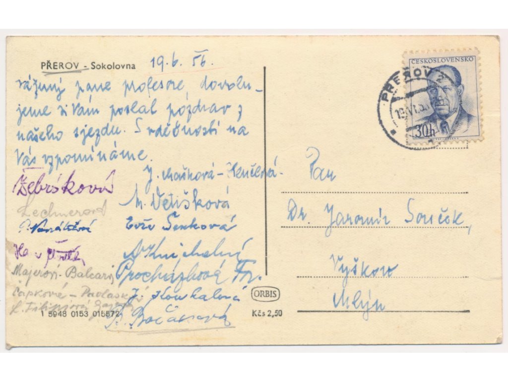 53 - Přerov, oživená partie před Sokolovnou, cca 1956