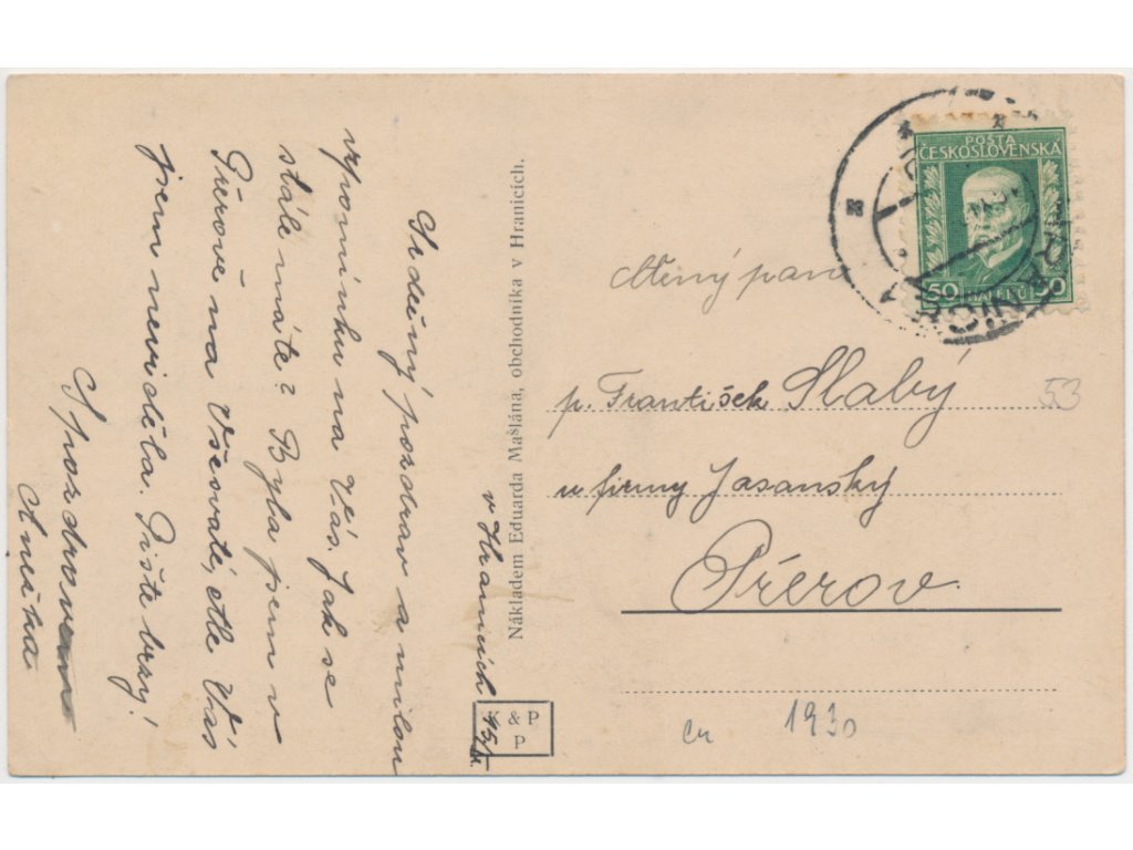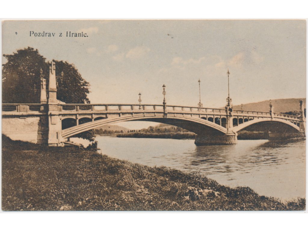 53 - Přerovsko, Hranice, partie u řeky s mostem, cca 1930